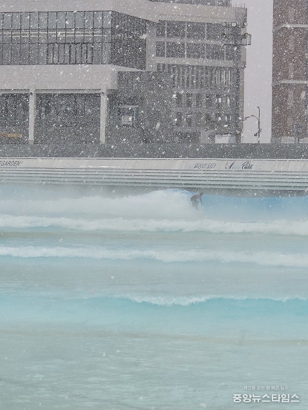 (중앙뉴스타임스 = 방재영 기자) 시흥시 거북섬을 순백으로 물들인 17일 전국 곳곳에 내린 첫눈으로 세계 최대의 서핑 축제를 아름답게 만들었다. 11개국에서 참가한 서퍼들은 새하얗게 내리는 함박눈을 맞으며 2.4미터 높이의 거대한 파도를 갈랐다. 필리핀, 대만 등 동남아 국가에서 참가한 선수들은 하늘 가득 내려오는 첫눈에 잊지 못할 대회가 될 것 같다며 엄지를 들어 올렸다.