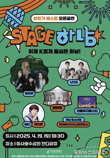 (중앙뉴스타임스 = 이광운 기자) 하남시와 하남문화재단이 오는 4월 19일 토요일 저녁 6시 30분, 미사호수공원 잔디광장에서 ‘2025 Stage 하남! 버스킹’의 화려한 시작을 알리는 오픈공연을 연다.