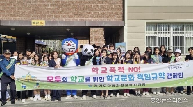 (중앙뉴스타임스 = 이광운 기자) 안양과천교육지원청은 25일 과천문원중학교에서 학교폭력 예방문화 조성을 위한‘모두의 학교를 위한 학교문화 책임규약 캠페인’을 실시했다.