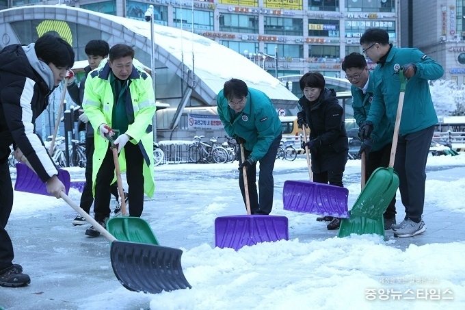 (중앙뉴스타임스 = 방재영 기자) 27일, 이동환 고양특례시장은 첫눈이 많이 내리자 예정돼 있던 간부회의를 취소한 후 화정역에서 제설작업에 참여했다. 이동환 시장은 제설 상황을 확인하고 시민들이 불편하지 않도록 신속하고 철저한 제설작업을 당부했다.