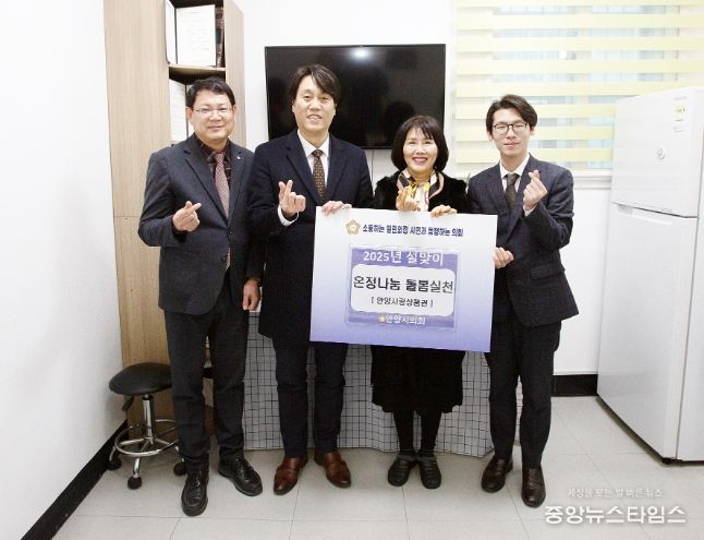 (중앙뉴스타임스 = 방재영 기자) 안양시의회는 지난 23일 설 명절을 맞아 관내 사회복지시설 4곳을 방문해 관계자들에게 격려와 위로의 손길을 전하고 위문품을 전달했다. 이번 방문에는 박준모 의장과 이동훈 총무경제위원장이 함께 참여했다.