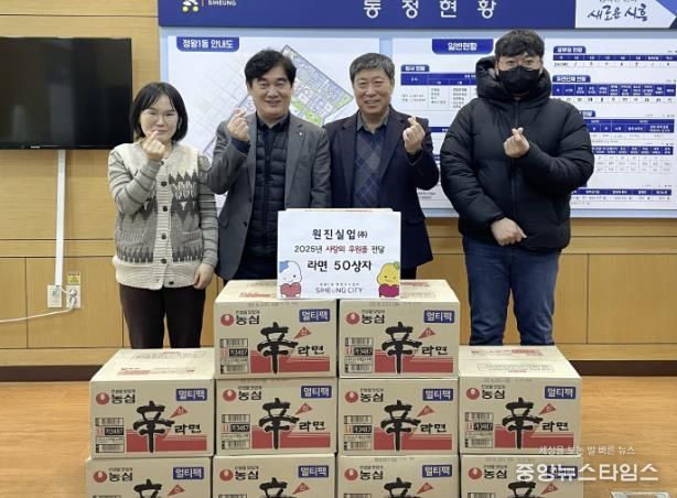 (중앙뉴스타임스 = 방재영 기자) 시흥시 정왕1동 행정복지센터에 지난 6일 생활폐기물 수집 운반업체인 원진실업㈜이 방문해 관내 소외계층 이웃을 위한 라면 50상자(150만 원 상당)를 후원했다.
