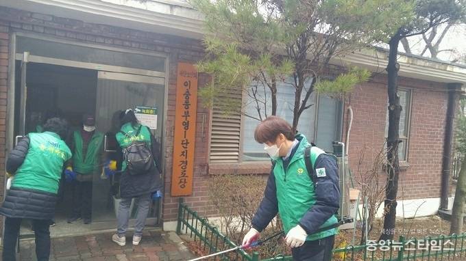 경로당은 호흡기질환에 취약한 어르신들의 공동생활공간으로 감염병 예방을 위해 단체별로 2개조 편성해 싱크대, 화장실 등 경로당 내․외부에 대해 구석구석 방역을 진행했다.