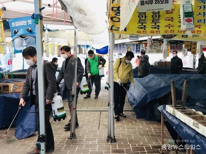 (중앙뉴스타임스 = 방재영 기자) 성남시상권활성화재단은 코로나19 확산세에 대응해 24일 오후 2시 모란민속5일장 일대에 대한 긴급 방역 소독을 실시했다.