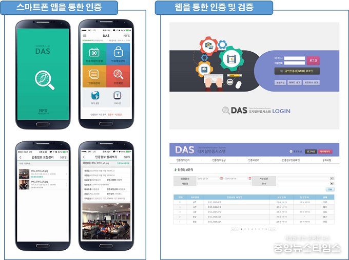 ‘디지털 인증 서비스’는 수사 현장에서 수사관이 스마트폰 전용앱으로 동영상·음성·사진을 촬영해 해당 파일의 주요정보를 국립과학수사연구원 내 인증 서버로 실시간으로 전송하고 수사관과 국과수 인증 서버에 해당 파일의 인증정보를 공유하는 시스템이다.