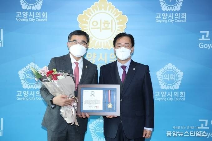 (중앙뉴스타임스 = 방재영 기자) 고양시의회(의장 이길용) 채우석 의원이 3일 오후 2시 의회 의장실에서 ‘제2회 (사)경기언론인협회 찾아가는 의정·행정대상 시상식’에서 기초의원 부문 의정대상을 수상하는 영예를 안았다.