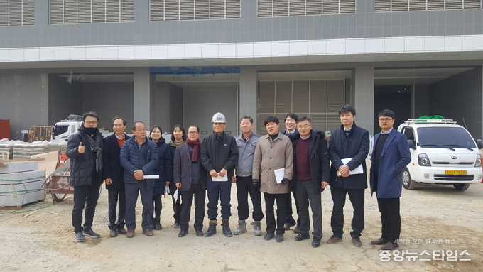 박람회 개최 장소인 수원컨벤션센터 공사 현장을 방문한 박람회 관계자들. (수원시 제공)