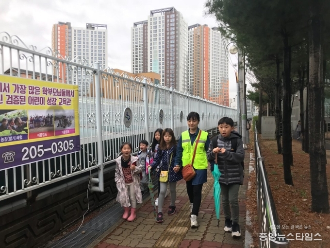 ‘어린이 보행 안전 지도사업’은 3월부터 12월까지(방학 기간 제외) 보행 안전 지도사가 초등학생 등·하굣길에 함께하며 아이들을 데려다주는 것이다.