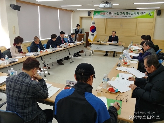 29일 수원시농업기술센터 세미나실에서 열린 농업산학협동심의회의 모습. (사진 = 수원시)