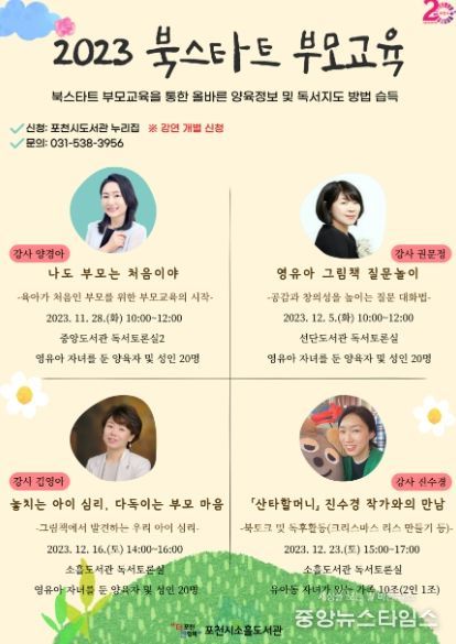 (중앙뉴스타임스 = 김수진 기자) 포천시는 오는 28일부터 12월 23일까지 포천시도서관 3개소(중앙, 선단, 소흘)에서 북스타트 부모교육을 운영한다.