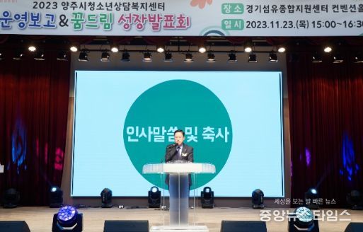 (중앙뉴스타임스 = 김수진 기자) 양주시청소년상담복지센터는 지난 23일 경기섬유종합지원센터에서 청소년상담복지센터 운영보고와 꿈드림 성장발표회‘청·꿈 숲을 이루다!’를 진행했다.