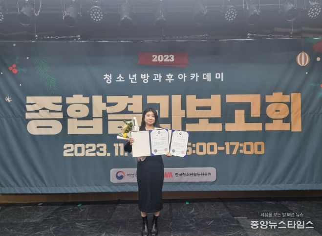 (중앙뉴스타임스 = 김수진 기자) 포천시는 ‘포천청소년문화의집 방과후아카데미’가 지난 30일 여성가족부 주관 청소년방과후아카데미 종합결과보고회에서 ‘2023년 청소년방과후아카데미 우수사례 공모전(디지털체험활동 부문)’에 참여해 최우수상 및 업무유공자 표창을 수상했다고 밝혔다.
