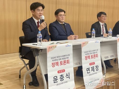 (중앙뉴스타임스 = 방재영 기자) 경기도의회 문화체육관광위원회 윤충식 의원(국민의힘, 포천1)은 지난 23일 포천시청 신청사 대회의실에 개최된 ‘2024년 포천시 사회복지사 등 처우향상 조례 개정을 위한 정책토론회’에 참석 행정적·재정적 지원을 통한 사회복지사의 처우개선을 확대해야 한다고 주장했다.
