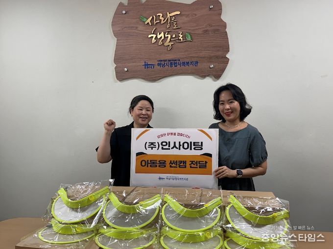 (중앙뉴스타임스 = 방재영 기자) ㈜인사이팅(대표 박지현)은 하남시종합사회복지관에 6월 25일 하남시 아동들을 위한 썬캡 100개를 기부하는 전달식을 가졌다.