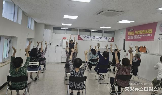 ‘2024 건강다줌’ 프로그램은 방문건강관리 사업에 등록된 독거노인 40명을 대상으로 주 2회 10주간 총 20회에 걸쳐 대면·비대면 방식으로 진행하는 운동 프로그램이다.