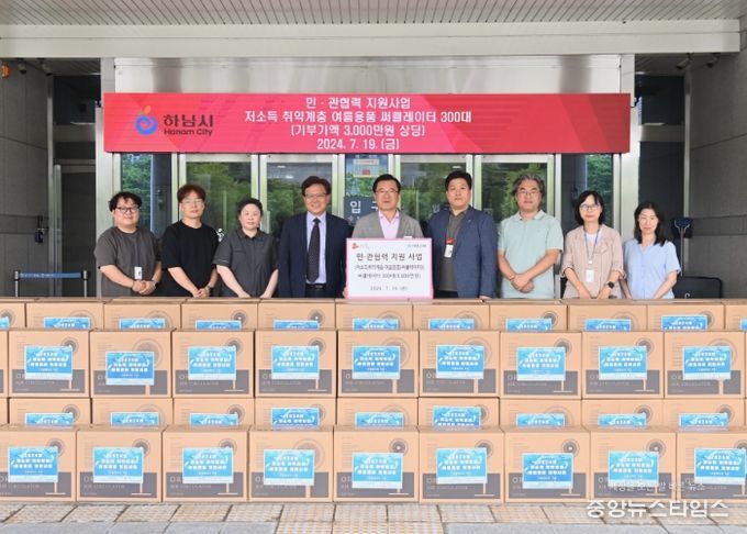 하남시는 하남사랑愛나눔 후원금으로 매년 민·관협력사업을 추진하고 있으며, 그중 올 여름 관내 취약계층의 건강하고 시원한 여름나기를 위해 써큘레이터 300대(3,000만원)를 지원했다.