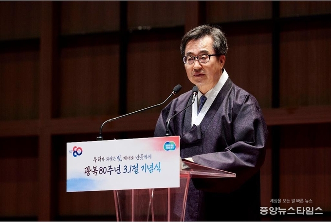김 지사는 “지난 2년 7개월 동안 윤석열 정부는 ‘역사 내란’을 벌였다”며 “사도광산 세계유산 등재, 몰상식한 역사 왜곡, 주요 역사기관장에 편향된 인물들을 임명하기까지 윤석열 정부가 입힌 분열의 상처를 치유해야 한다”고 했다.