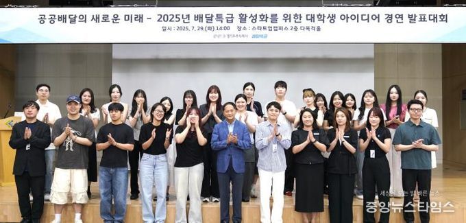 (중앙뉴스타임스 = 방재영 기자) 경기도주식회사는 지난 29일, 성남시 스타트업캠퍼스에서 개최된 ‘2025년 대학생 동아리 배달특급 활성화 발표대회’에서 브랜드와의 공감형 커뮤니케이션 방안 등을 제안한 4팀이 최우수상을 받았다고 30일 밝혔다.