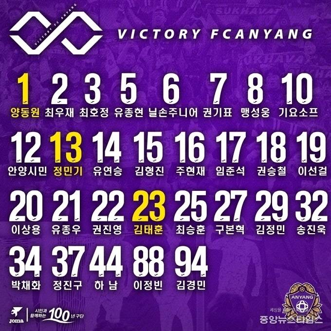 (중앙뉴스타임스 = 방재영 기자) 프로축구 K리그2 FC안양이 2020 시즌 선수단의 등번호를 확정했다.