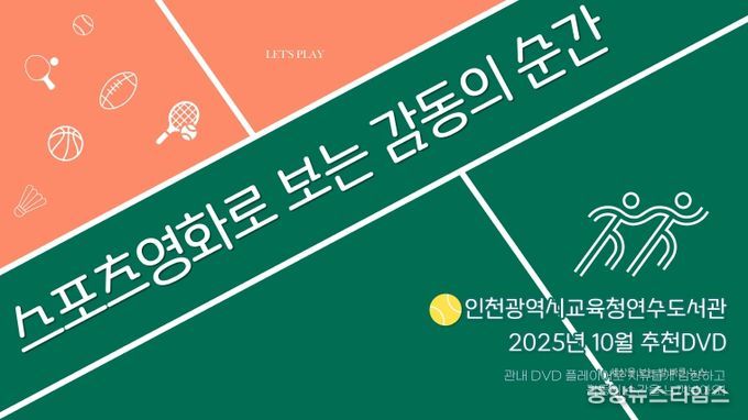 (중앙뉴스타임스 = 방재영 기자) 인천시교육청연수도서관은 10월 한 달간 ‘스포츠로 보는 감동의 순간’을 주제로 추천 DVD 코너를 운영한다고 30일 밝혔다.