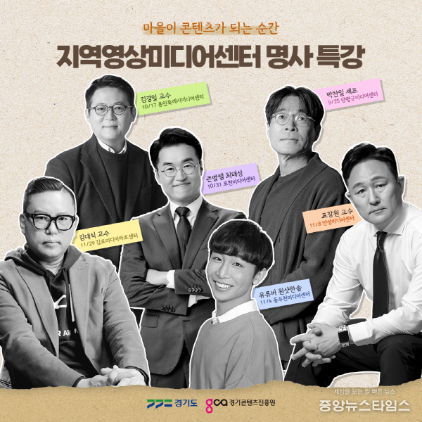 (중앙뉴스타임스 = 방재영 기자) 경기도와 경기콘텐츠진흥원(이하 경콘진)은 지역영상미디어센터의 활성화를 위해 도내 6개 시·군 영상미디어센터에서 명사 초청 특강과 체험 교실을 연다. 이번 행사는 미디어를 통한 시민 참여 기회를 넓히고, 일상 속에서 콘텐츠를 쉽게 접할 수 있도록 마련됐다.
