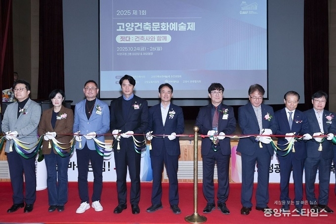 (중앙뉴스타임스 = 방재영 기자) 이동환 고양특례시장이 지난 25일 덕양구청 2층 대강당에서 열린' 제1회 고양건축문화예술제' 개막식에 참석해 축사를 했다. 26일까지 진행되는 이번 행사에서는 고양시 건축사 초대전, 사진작품전, 대학교 졸업작품전 등을 감상할 수 있다.