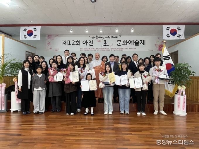 (중앙뉴스타임스 = 방재영 기자) 재단법인 아천문화교류재단(ACEF)이 주최-주관한 '제12회 아천효문화예술제’가 11월 1일 오후3시 아천문화교류센터에서 시상식이 개최됐다. 이날 행사에는 부모사랑 나라사랑의 올바른 가치관을 심어주기 위해 문화예술 부문의 우수한 인재들을 발굴 시상하고 올해로 12회를 맞았다.