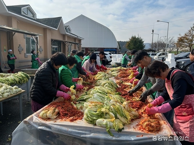 (중앙뉴스타임스 = 방재영 기자) 홍천군 내촌면 새마을회(새마을지도자협의회장 김철우, 새마을부녀회장 정선영)는 5~6일 내촌면 생활체육공원에서 이웃사랑 실천을 위한 ‘사랑의 김장김치·쌀 나눔 행사’를 진행했다.