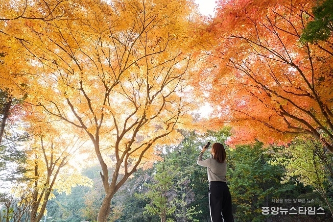 (중앙뉴스타임스 = 방재영 기자) 양주시청 단풍나무가 붉고 노랗게 물들어 가을 정취를 더하고 있다. 따스한 햇살에 반짝이는 단풍잎이 발걸음을 멈추게 한다.