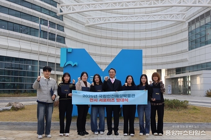 (중앙뉴스타임스 = 방재영 기자) 국립인천해양박물관은 7일 박물관 3층 대회의실에서 ‘전시 서포터즈’ 발대식을 개최했다. 이번 사업은 인천 지역 대학생들이 전시 현장을 직접 경험하며 문화콘텐츠 기획 역량을 키우고, 박물관과 지역사회가 함께 성장하는 협력 기반을 마련하기 위해 추진됐다.