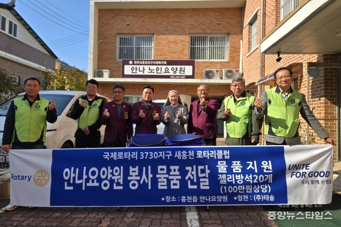 (중앙뉴스타임스 = 방재영 기자) 국제로타리 3730지구 새홍천로타리클럽(회장 박기출)은 최근 홍천읍 소재 안나 노인요양원에 어르신 맞춤형 기능성 젤리방석 20개(100만원 상당)를 전달했다.