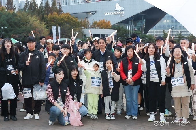 이날 어린이부터 성인까지 다양한 연령대의 고양시민이 모였다. 참가자들은 LED야간봉을 들고, 노래하는 분수대에서 출발해 일산호수공원을 돌아 다시 분수대로 돌아오는 5km코스를 완주했다.