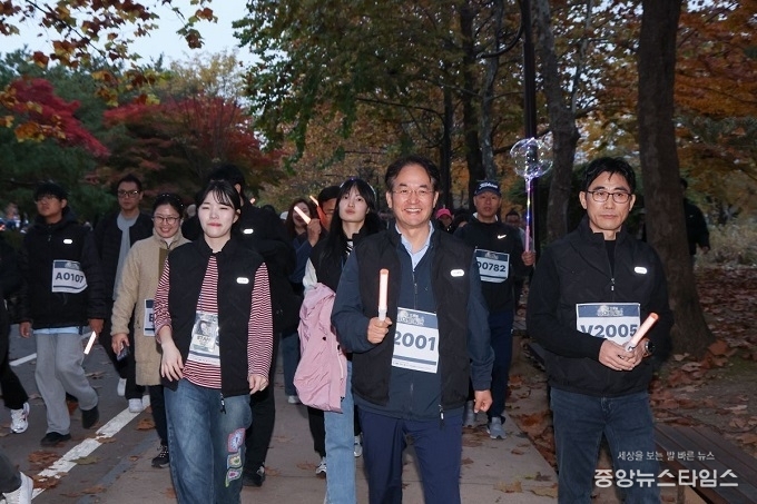 (중앙뉴스타임스 = 방재영 기자) 지난 8일 일산호수공원에서 열린 ‘2025 고양 호롱불 나이트워크’, 이동환 고양특례시장과 시민들이 가을 정취 가득한 일산호수공원을 함께 걸으며 소통했다.
