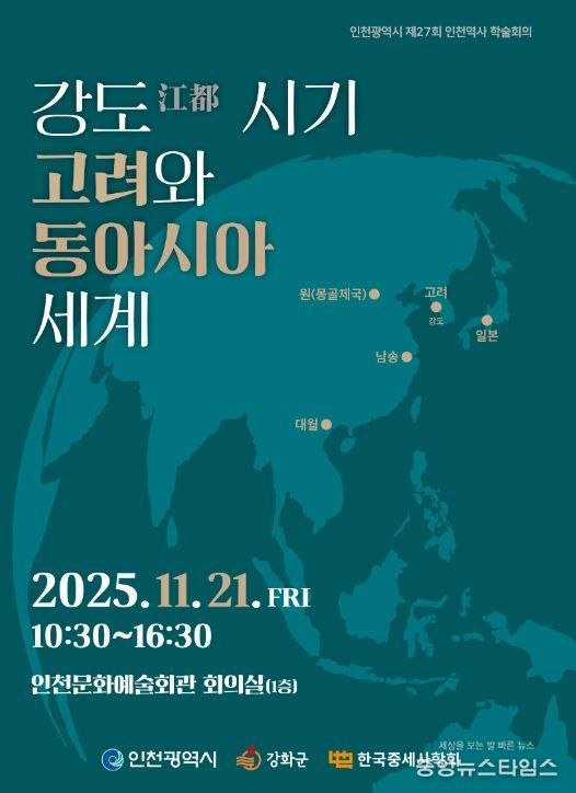(중앙뉴스타임스 = 방재영 기자) 강화군은 인천광역시 및 한국중세사학회와 공동으로 오는 11월 21일 인천문화예술회관 회의실에서 ‘강도(江都) 시기 고려와 동아시아 세계’를 주제로 ‘인천역사 학술회의’를 개최한다.