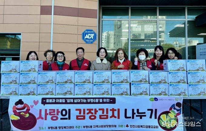 (중앙뉴스타임스 = 방재영 기자) 인천 부평구 부평6동 지역사회보장협의체는 지난 10일 동 행정복지센터에서 ‘동절기 사랑의 김장김치 나눔’ 행사를 진행했다.