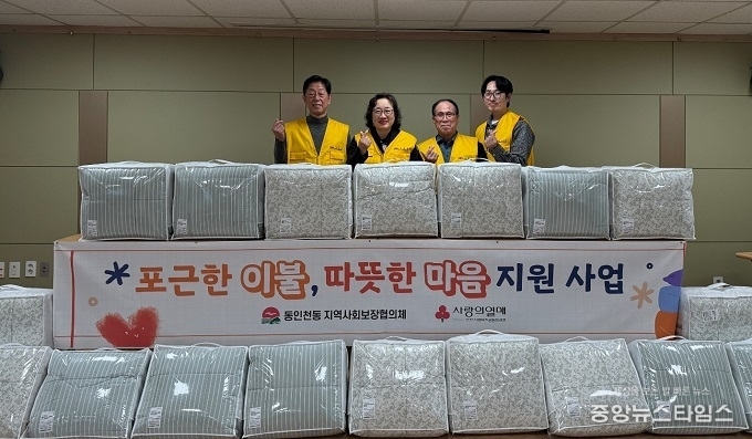 (중앙뉴스타임스 = 방재영 기자) 인천 중구 동인천동 지역사회보장협의체(공동위원장 이순자, 진대영)는 겨울을 앞두고 지난 10일 지역 저소득층 가구를 대상으로 겨울 이불을 지원하는 ‘포근한 이불, 따뜻한 마음 지원사업’ 전달식을 개최했다.