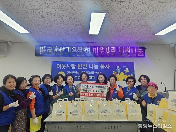 (중앙뉴스타임스 = 방재영 기자) 인천 남동구 서창2동 바르게살기운동위원회(위원장 김민정)는 최근 어려운 이웃을 위한 ‘사랑의 반찬 나눔’ 봉사활동을 진행했다고 12일 밝혔다.