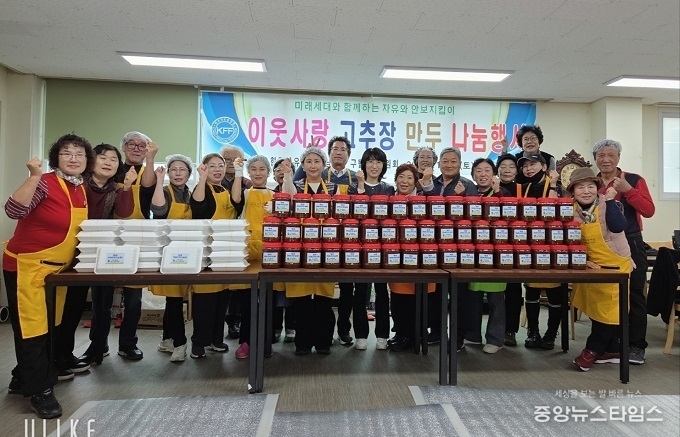(중앙뉴스타임스 = 방재영 기자) 인천 남동구 구월4동 행정복지센터는 자유총연맹(회장 신동식) 주관으로 ‘이웃사랑 고추장 담그기’ 행사를 성황리에 개최했다고 13일 밝혔다.