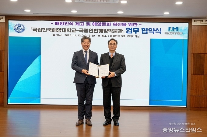 (중앙뉴스타임스 = 방재영 기자) 국립인천해양박물관은 12일 국립한국해양대학교(총장 류동근)와 해양인식 제고 및 해양문화 확산을 위한 업무협약을 체결했다.