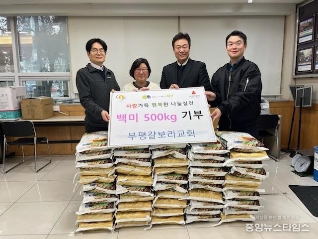 (중앙뉴스타임스 = 방재영 기자) 인천 부평구 부평1동은 지난 27일 동 소재 부평갈보리교회로부터 백미 500kg을 후원받았다고 밝혔다.