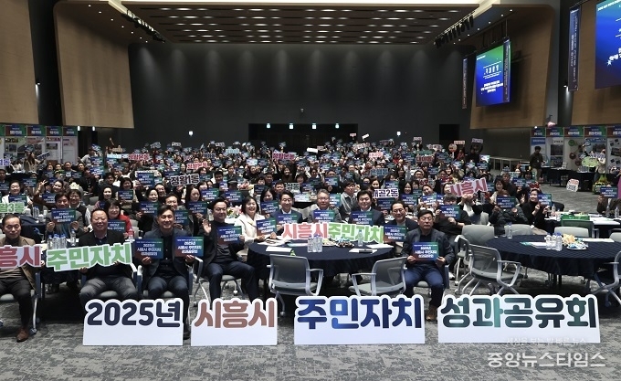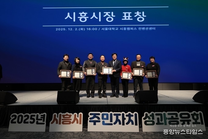 (중앙뉴스타임스 = 방재영 기자) 2일 서울대학교 시흥캠퍼스 컨벤션센터에서 열린 ‘2025년 시흥시 주민자치 성과공유회’에서 임병택 시흥시장이 각 동 주민자치회 관계자를 격려하고, 주민자치 활성화를 위해 노력한 유공자들에게 표창을 수여했다.