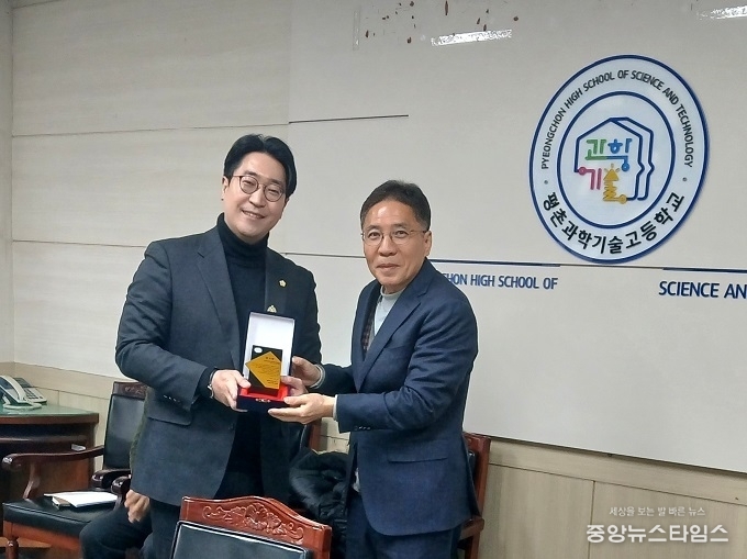 (중앙뉴스타임스 = 방재영 기자) 안양시의회 김도현 의원(민주당, 평촌·평안·귀인·범계·갈산)이 학교 교육 발전 및 환경 개선에 기여한 공로로 평촌과학기술고등학교(교장 김광회)로부터 감사패를 수상했다. 감사패는 지난 4일 개최된 학교운영위원회에서 수여됐다.