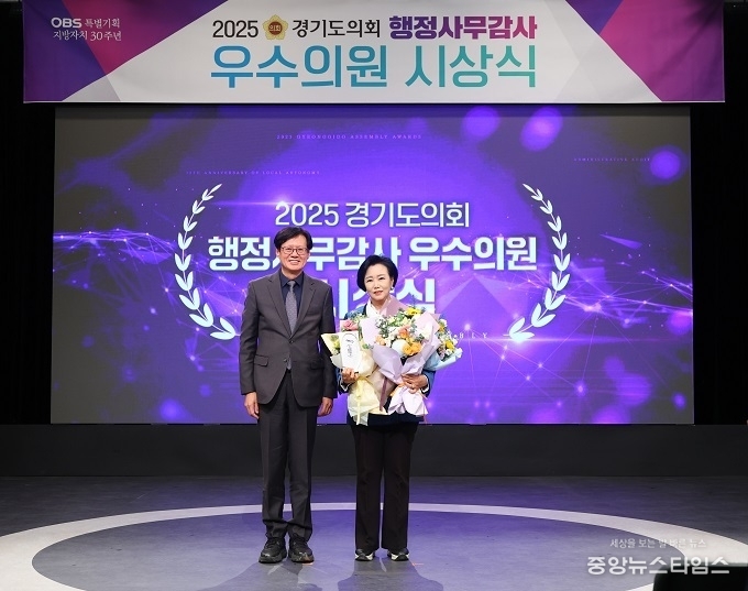 (중앙뉴스타임스 = 방재영 기자) 경기도의회 정윤경 부의장(더불어민주당, 군포1)은 8일 OBS가 주관한 ‘지방자치 30주년 특집 경기도의회 행정사무감사 우수의원’에 선정되어 수상의 영예를 안았다.