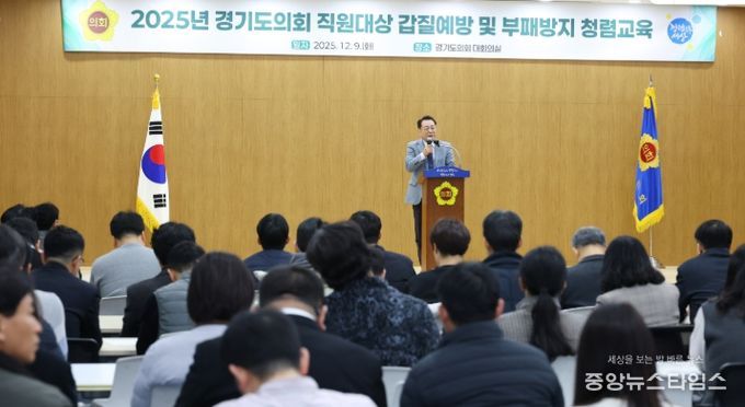 (중앙뉴스타임스 = 방재영 기자) 경기도의회는 9일 오전 의회 대회의실에서 전 직원을 대상으로 ‘갑질예방 및 부패방지 청렴교육’을 실시했다.