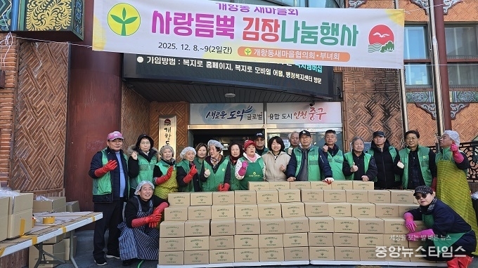 (중앙뉴스타임스 = 방재영 기자) 인천 중구 개항동 새마을협의회(조세옥 회장)·부녀회(이학연 회장)는 지난 8~9일 양일간 개항동 행정복지센터에서 ‘개항동 새마을회 회원들이 함께하는 사랑 듬뿍 김장 나눔 행사’를 펼쳤다고 밝혔다.