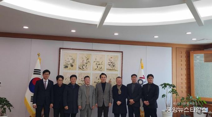 (중앙뉴스타임스 = 방재영 기자) 지난 26일, 김종수 평창군 번영회장과 관내 8개 읍⋅면 번영회장은 강원특별자치도청에서 김진태 강원특별자치도지사를 만나 평창군의 2026년도 주요 현안과 발전 방안에 대한 간담회를 갖고, 현장의 목소리를 중심으로 지역경제 활성화, 생활 SOC 확충, 주민 정주여건 개선 등 지역이 당면한 주요 과제들을 논의했다.