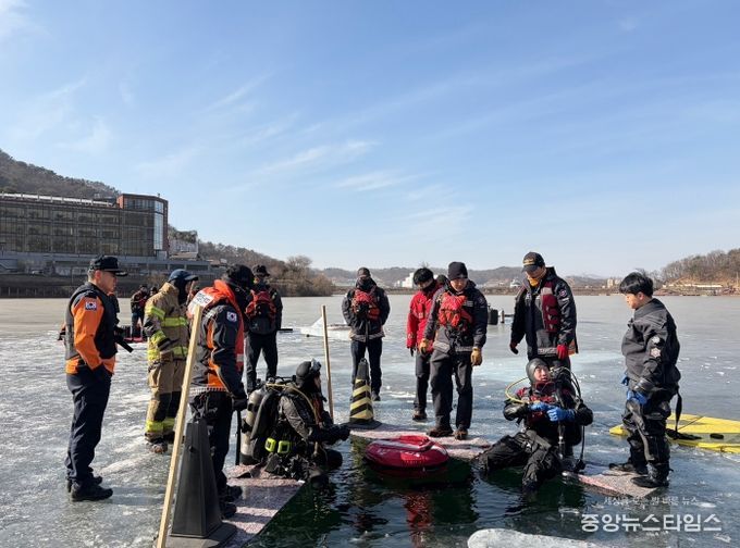 훈련 내용으로는 동계수난구조 절차 및 안전교육을 시작으로 얼음물 잠수 적응 훈련과 수중탐색법 실습 위주로 이루어졌다. 특히 얼음 아래에서 발생하는 실제 사고 상황을 가정해 호흡기 및 잠수장비를 활용한 실전 중심 훈련을 실시하고, 해빙기 사고를 대비한 구조 기법을 집중 숙달하는 데 중점을 뒀다.
