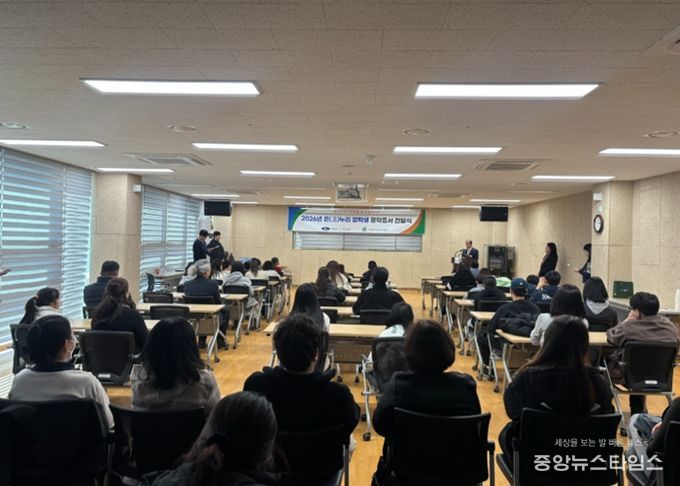 (중앙뉴스타임스 = 방재영 기자) 남양주시는 25일 다산행정복지센터에서 남양주시복지재단이 ‘2026년 온(溫)누리 장학증서 전달식’을 개최해 총 116명의 신청자 중 선발된 55명의 아동·청소년에게 장학증서를 수여했다고 26일 밝혔다.