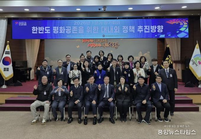 (중앙뉴스타임스 = 방재영 기자) 민주평화통일자문회의 의왕시협의회가 4일 시청 대회의실에서 김학기 시의회 의장, 이소영 국회의원, 자문위원 등 40여 명이 참석한 가운데‘한반도 평화공존을 위한 대내외 정책 추진방향’을 주제로‘2026년 1분기 정기회의’를 개최했다.