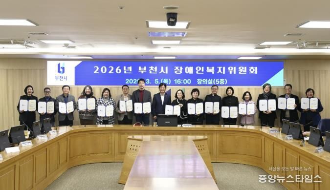(중앙뉴스타임스 = 방재영 기자) 부천시는 지난 5일 시청 창의실에서 ‘2026년 제1차 부천시 장애인복지위원회’를 열고, 장애인과 가족이 체감할 수 있는 실질적 복지정책 추진을 위한 소통의 시간을 가졌다.